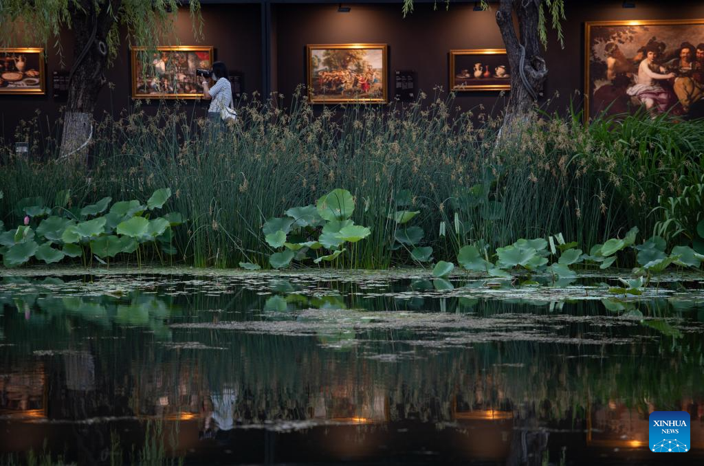 An European oil painting exhibition is held along a section of the Liangma River in Beijing, capital of China, June 16, 2023. (Xinhua/Chen Zhonghao)