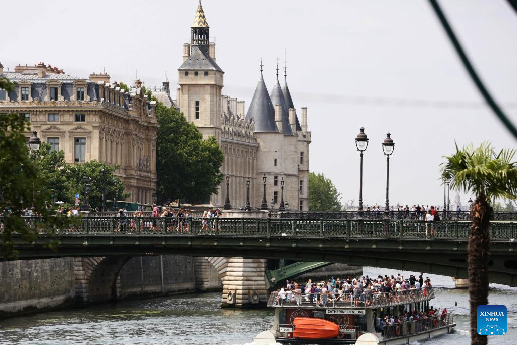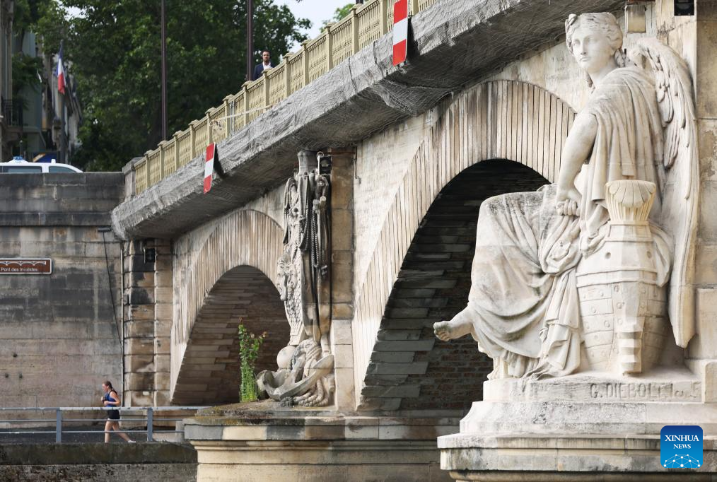 A jogger runs along the Seine River in Paris, France, July 4, 2023. (Xinhua/Gao Jing)