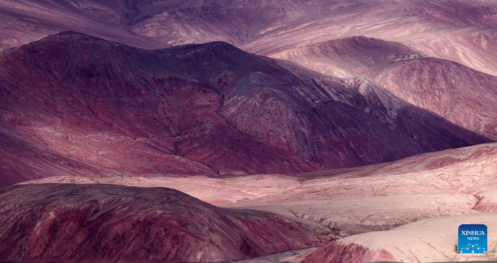 This aerial photo taken on July 5, 2023 shows hills in the Altun Mountains National Nature Reserve in northwest China's Xinjiang Uygur Autonomous Region. With an average altitude of 4,580 meters, the Altun Mountains National Nature Reserve covers a total area of 45,000 square kilometers and is a representative of plateau desert ecosystem in China. (Xinhua/Wang Peng)