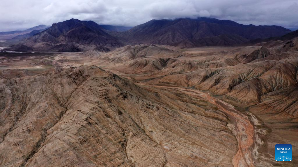 This aerial photo taken on July 6, 2023 shows valleys in the Altun Mountains National Nature Reserve in northwest China's Xinjiang Uygur Autonomous Region. With an average altitude of 4,580 meters, the Altun Mountains National Nature Reserve covers a total area of 45,000 square kilometers and is a representative of plateau desert ecosystem in China. (Xinhua/Wang Peng)