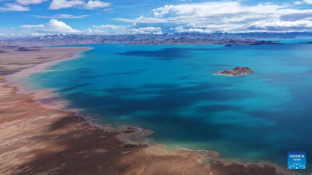 This aerial photo taken on July 5, 2023 shows a lake in the Altun Mountains National Nature Reserve in northwest China's Xinjiang Uygur Autonomous Region. With an average altitude of 4,580 meters, the Altun Mountains National Nature Reserve covers a total area of 45,000 square kilometers and is a representative of plateau desert ecosystem in China. (Xinhua/Wang Peng)
