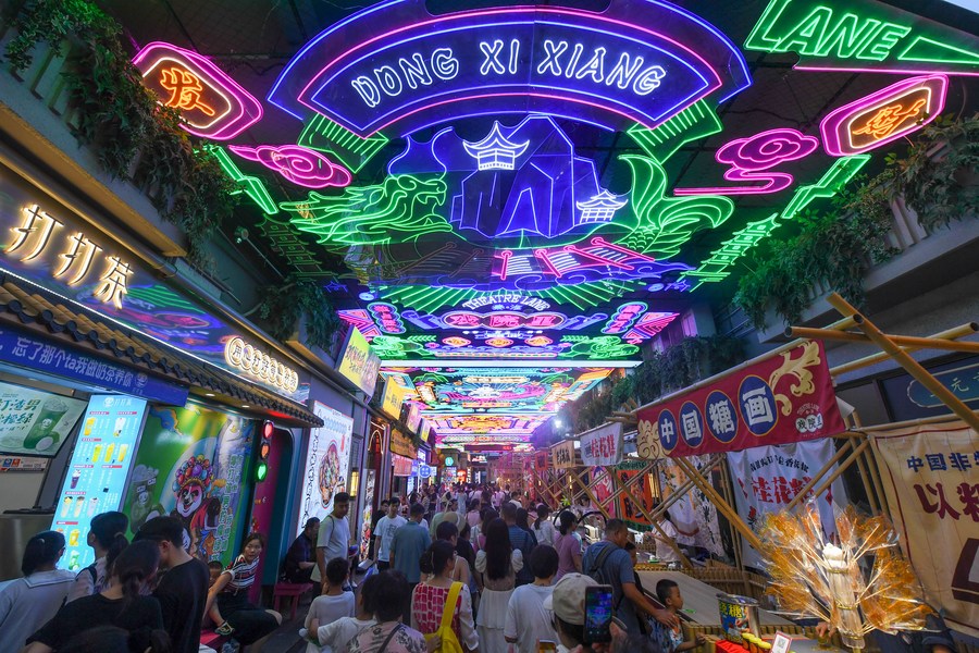 Tourists visit Theatre Lane scenic area in Nanjing, east China's Jiangsu Province, Aug. 21, 2023. (Xinhua/Li Bo)