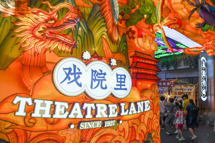 Tourists visit the Theatre Lane scenic area in Nanjing, east China's Jiangsu Province, Aug. 21, 2023. (Xinhua/Li Bo)