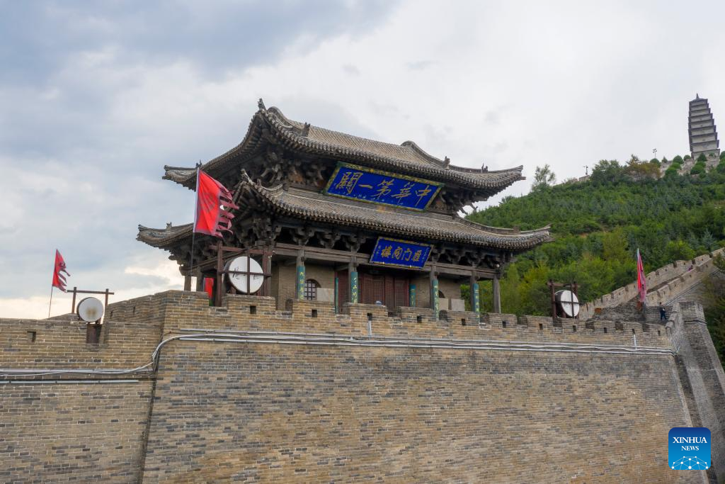 This photo taken on Aug. 30, 2023 shows the Yanmen Pass in Daixian County, north China's Shanxi Province. The Yanmen Pass is a famed part of the Great Wall. The Great Wall, a UNESCO World Heritage Site, consists of many interconnected walls, some dating back 2,000 years. (Xinhua/Liu Jinhai)