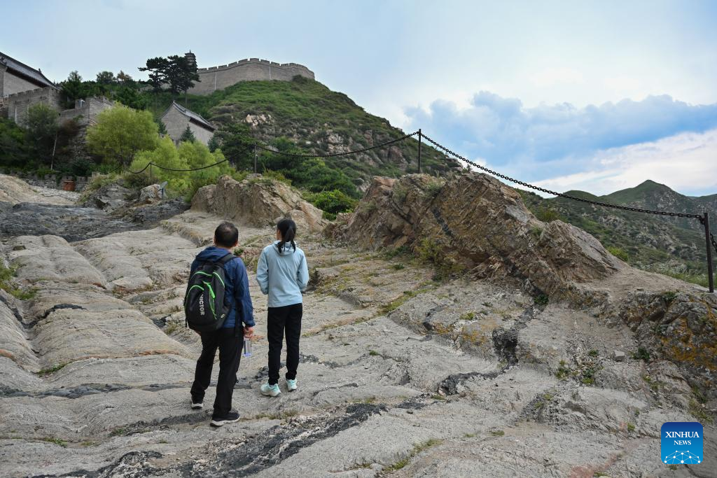 This photo taken on Aug. 29, 2023 shows people visiting the Yanmen Pass in Daixian County, north China's Shanxi Province. The Yanmen Pass is a famed part of the Great Wall. The Great Wall, a UNESCO World Heritage Site, consists of many interconnected walls, some dating back 2,000 years. (Xinhua/Yang Chenguang)