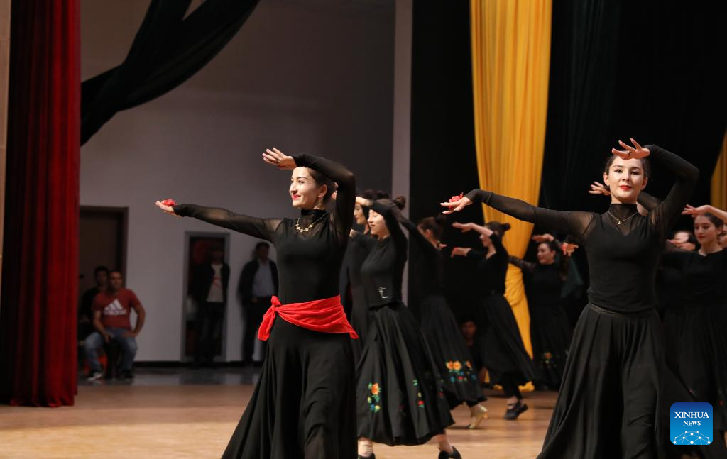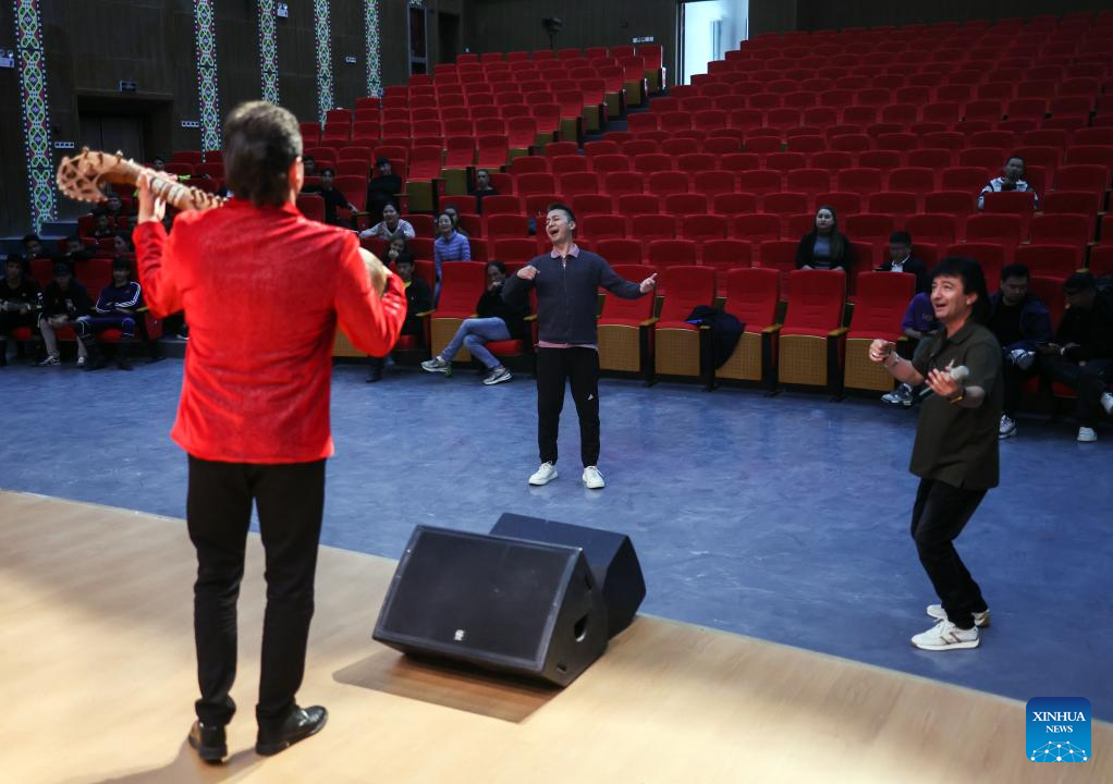 Artists of a local art troupe rehearse a program in Taxkorgan Tajik Autonomous County, northwest China's Xinjiang Uygur Autonomous Region, Sept. 4, 2023. Taxkorgan Tajik Autonomous County has made great efforts in the integration of local culture and tourism in recent years, enriching the cultural life of people and promoting foreign exchanges. The county also carries forward traditional Chinese culture to build cultural tourism festivals, which shows the scenery of the Pamir Plateau and the happy and stable life of the people. (Xinhua/Jin Haoyuan)