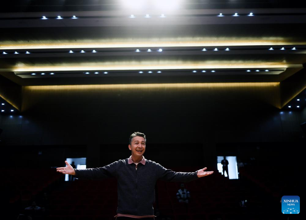 An artist directs a rehearsal in Taxkorgan Tajik Autonomous County, northwest China's Xinjiang Uygur Autonomous Region, Sept. 4, 2023. Taxkorgan Tajik Autonomous County has made great efforts in the integration of local culture and tourism in recent years, enriching the cultural life of people and promoting foreign exchanges. The county also carries forward traditional Chinese culture to build cultural tourism festivals, which shows the scenery of the Pamir Plateau and the happy and stable life of the people. (Xinhua/Lan Hongguang)