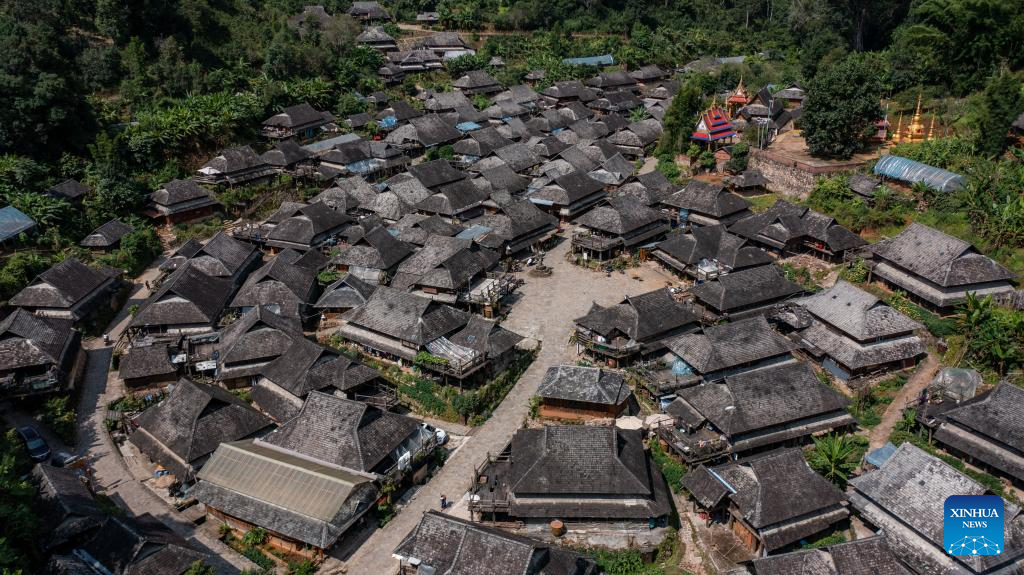 This aerial photo taken on Sept. 19, 2023 shows the Manghong Village in Pu'er City, southwest China's Yunnan Province. The Cultural Landscape of Old Tea Forests of Jingmai Mountain in Pu'er was inscribed on the UNESCO World Heritage List on Sunday at the extended 45th session of the UNESCO World Heritage Committee in Riyadh, Saudi Arabia, making it China's 57th World Heritage Site. (Xinhua/Hu Chao)