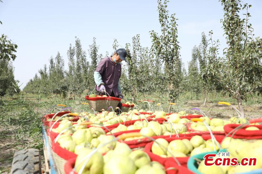 Fragrant pears enter harvest season at Xinjiang Production and Construction Corps, northwest China's Xinjiang Uygur Autonomous Region. (Photo: China News Service/Wang Wanjun)