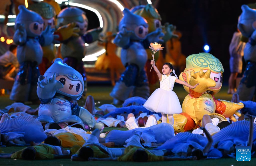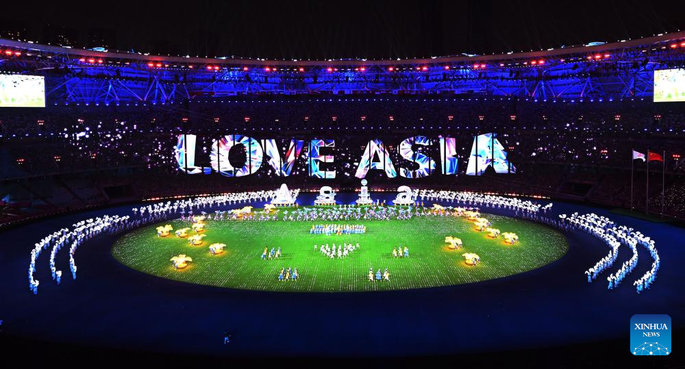 Artists perform during the closing ceremony of the 19th Asian Games at the Hangzhou Olympic Sports Center Stadium in Hangzhou, east China's Zhejiang Province, Oct. 8, 2023. (Xinhua/Yang Lei)