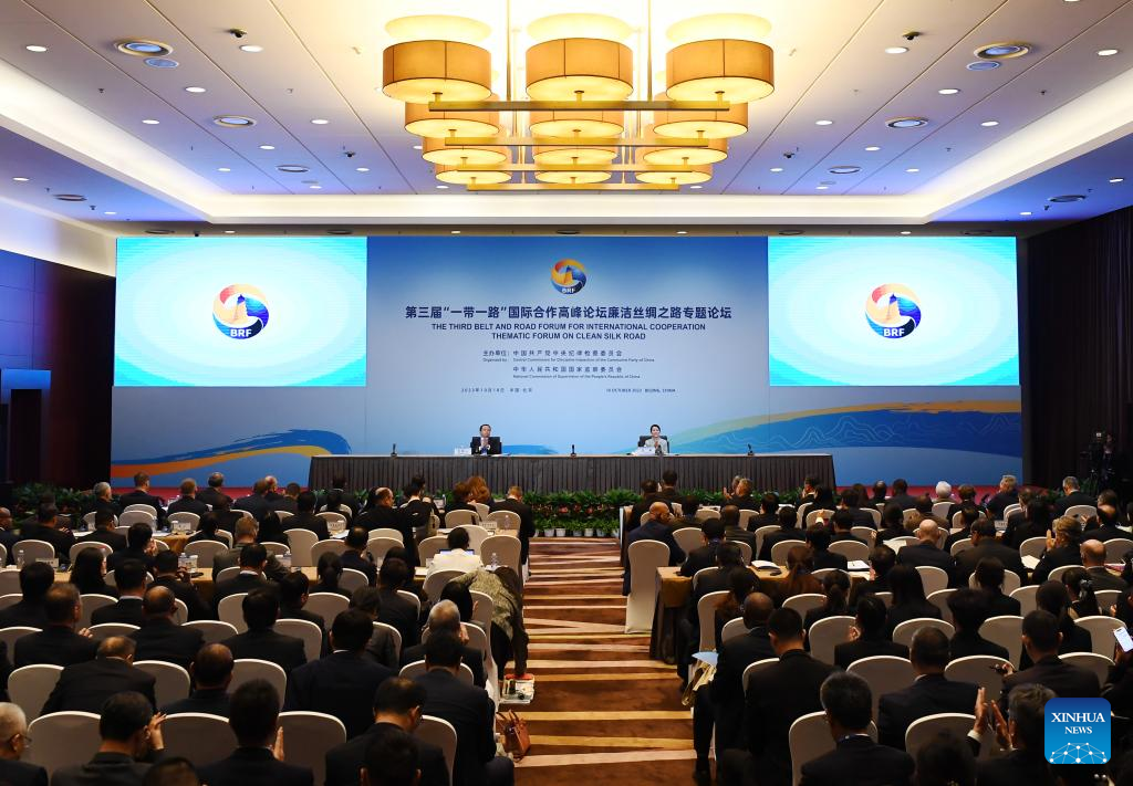 The Thematic Forum on Clean Silk Road of the third Belt and Road Forum for International Cooperation is held in Beijing, capital of China, Oct. 18, 2023. (Xinhua/Zhang Chenlin)