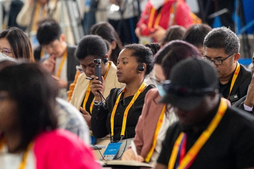 A press briefing is held at the Media Center of the third Belt and Road Forum for International Cooperation, Oct. 16, 2023. (People's Daily Online/Weng Qiyu)