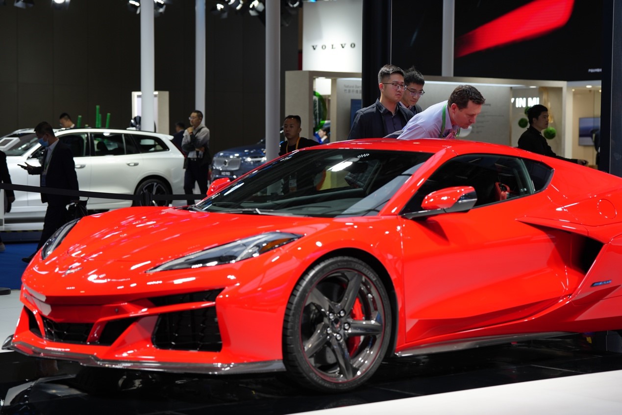 Photo taken on Nov. 8 shows a hybrid sports car exhibited at the automobile exhibition area at the sixth China International Import Expo (CIIE) in Shanghai, east China. (People’s Daily Online/Wu Chaolan)