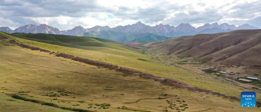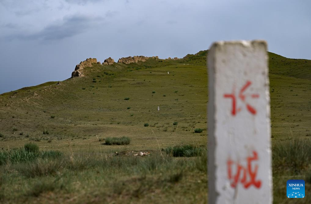 This photo taken on July 16, 2023 shows a part of the Great Wall in Tianzhu Tibetan Autonomous County in Wuwei, northwest China's Gansu Province. Gansu Province is home to multiple sections of the Great Wall that add up to 3,654 kilometers in length. The Hexi Corridor, a critical part of the ancient Silk Road winding through south of the province, boasts more than 1,400 kilometers of the Wall built in the Han Dynasty (202 BC-220 AD), and over 1,200 kilometers erected in the Ming Dynasty (1368-1644). Gansu is therefore dubbed "an open-air museum of the Great Wall." (Xinhua/Chen Zhonghao)