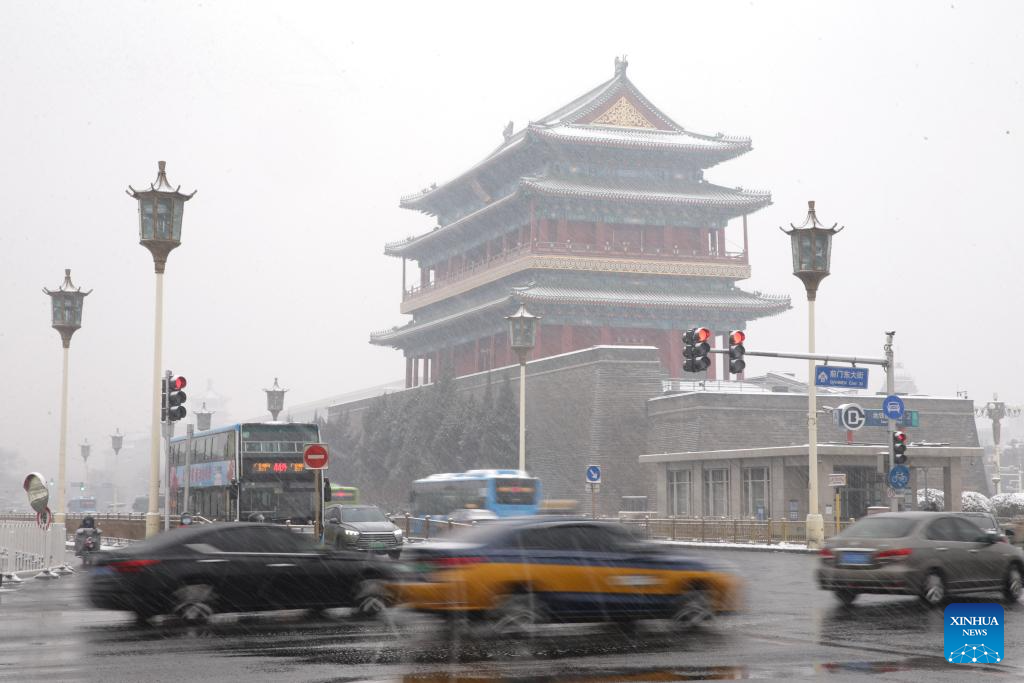 Motor vehicles pass by the Zhengyang Gate in Beijing, capital of China, Dec. 13, 2023. (Xinhua/Zheng Huansong)