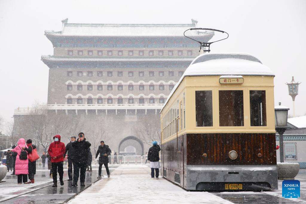 Tourists are pictured on Qianmen Street in Beijing, capital of China, Dec. 13, 2023. (Xinhua/Zheng Huansong)