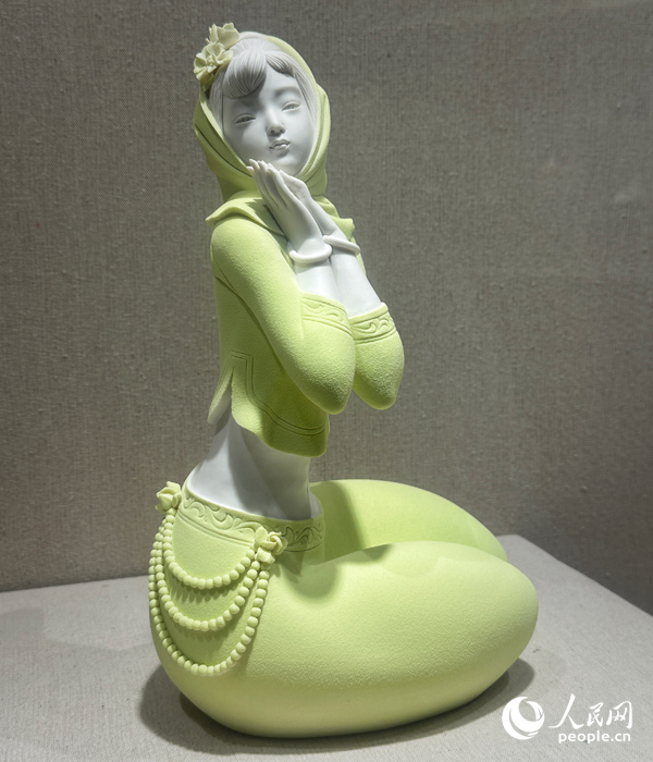 Photo shows a porcelain piece by Lin Lingyue, an arts and crafts master in southeast China's Fujian Province. (People's Daily Online/Liu Qing)