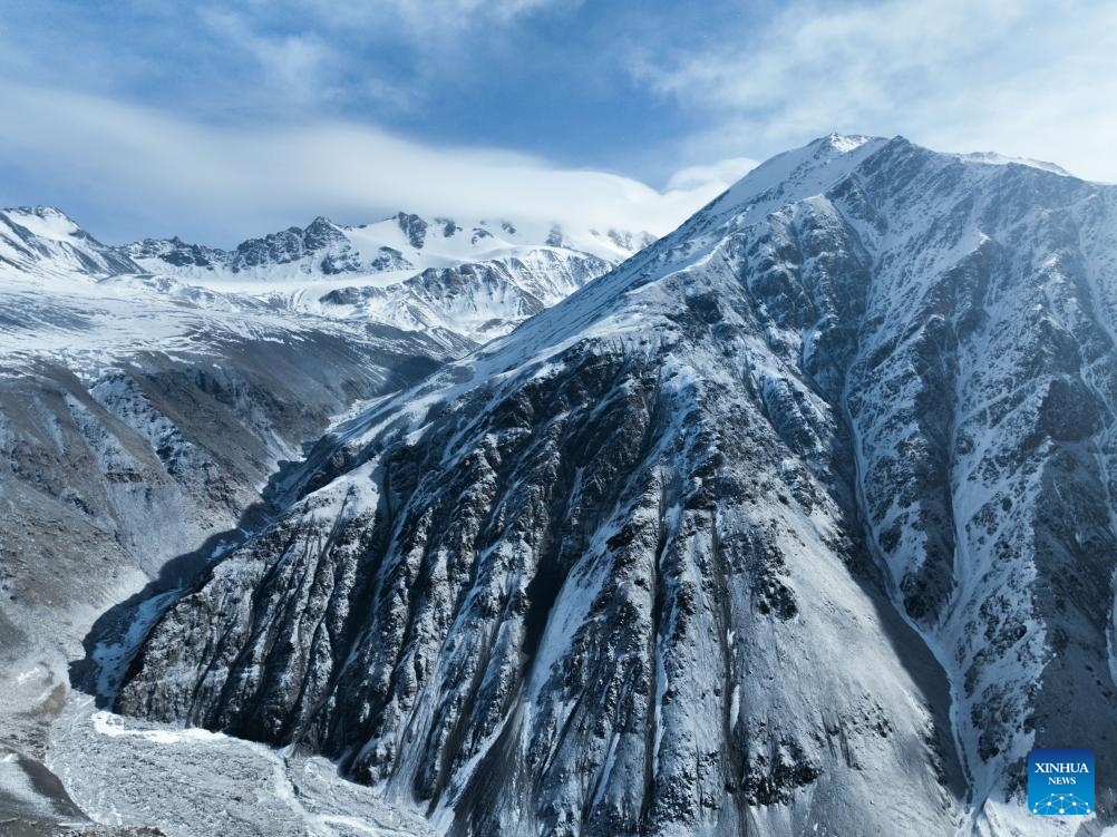 An aerial drone photo shows Mt. Gangshika in Menyuan Hui Autonomous County, northwest China's Qinghai Province, Jan. 23, 2024. (Xinhua/Geng Huihuang)