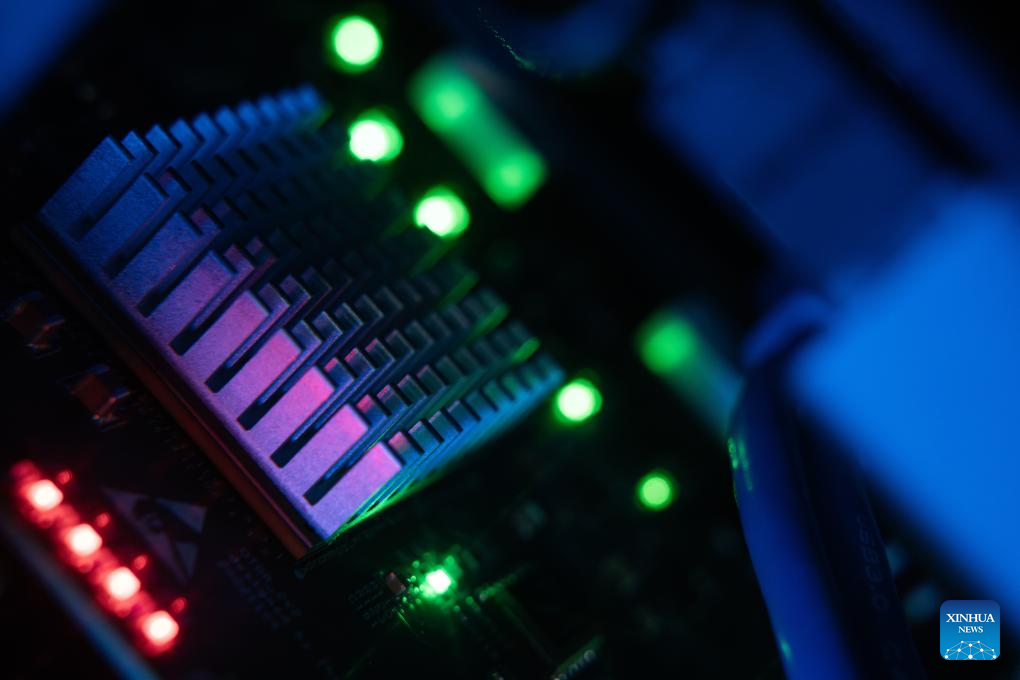 Yang Yuanfan communicates with a member of his company in Hefei, east China's Anhui Province, Jan. 18, 2024. (Xinhua/Zhang Duan)