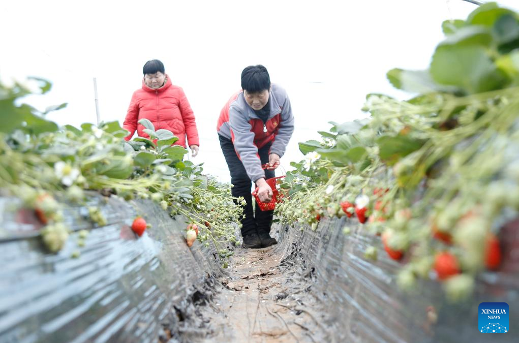 Villagers work in a strawberry field in Changxin Village of Xingtai City, north China's Hebei Province, Feb. 4, 2024. Sunday marks "Lichun", meaning the beginning of spring, the first solar term in the traditional Chinese lunar calendar. (Photo by Zhang Chi/Xinhua)