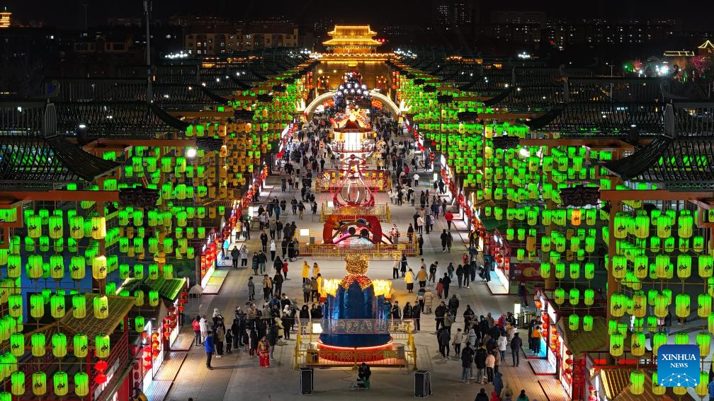 People walk on the city wall in Yanchi County, northwest China's Ningxia Hui Autonomous Region, Feb. 13, 2024. More Chinese people nowadays choose to go on a journey during the Spring Festival to experience different cultures and lunar new year atmosphere. (Xinhua/Feng Kaihua)