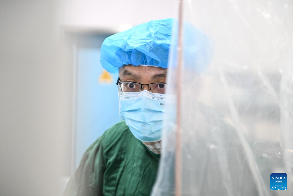 Zhang Junjie performs surgery on a patient at the Nanjing First Hospital in Nanjing, east China's Jiangsu Province, Feb. 20, 2024. (Xinhua/Ji Chunpeng)