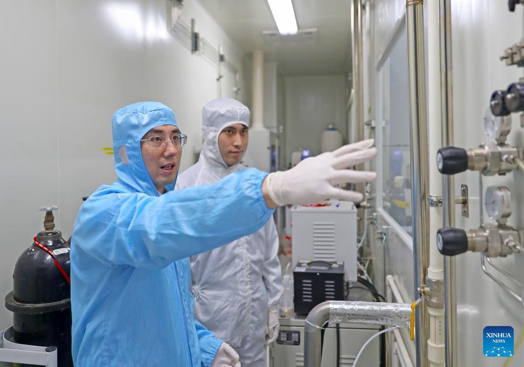 Sun Dongming (2nd R) communicates with employees of a semiconductor technology company in Shenyang, northeast China's Liaoning Province, Feb. 24, 2024.(Xinhua/Yang Qing)
