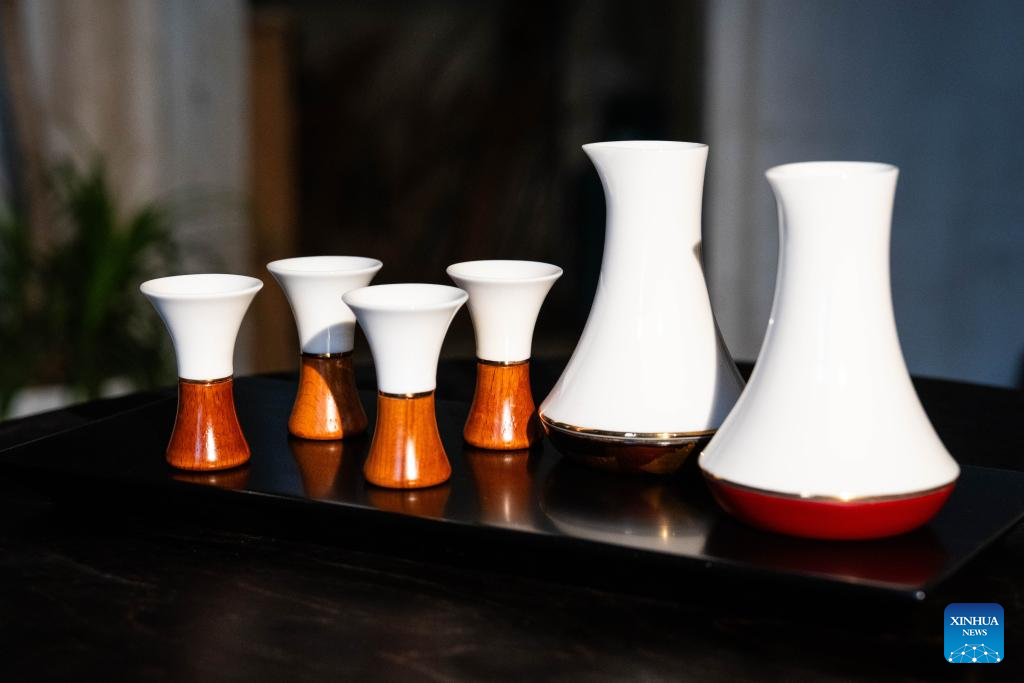 Lacquer coated drinking vessels are displayed at Hao Guanxiong's studio in Changsha, central China's Hunan Province, Feb. 28. 2024. (Xinhua/Chen Sihan)