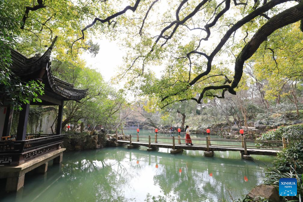 Tourists visit the Jichang Garden in early spring in Wuxi, east China's Jiangsu Province, March 1, 2024. The Jichang Garden in Wuxi is a classical Chinese garden built in the 16th century, best known for its elegant design and tranquil atmosphere. (Xinhua/Mao Jun)