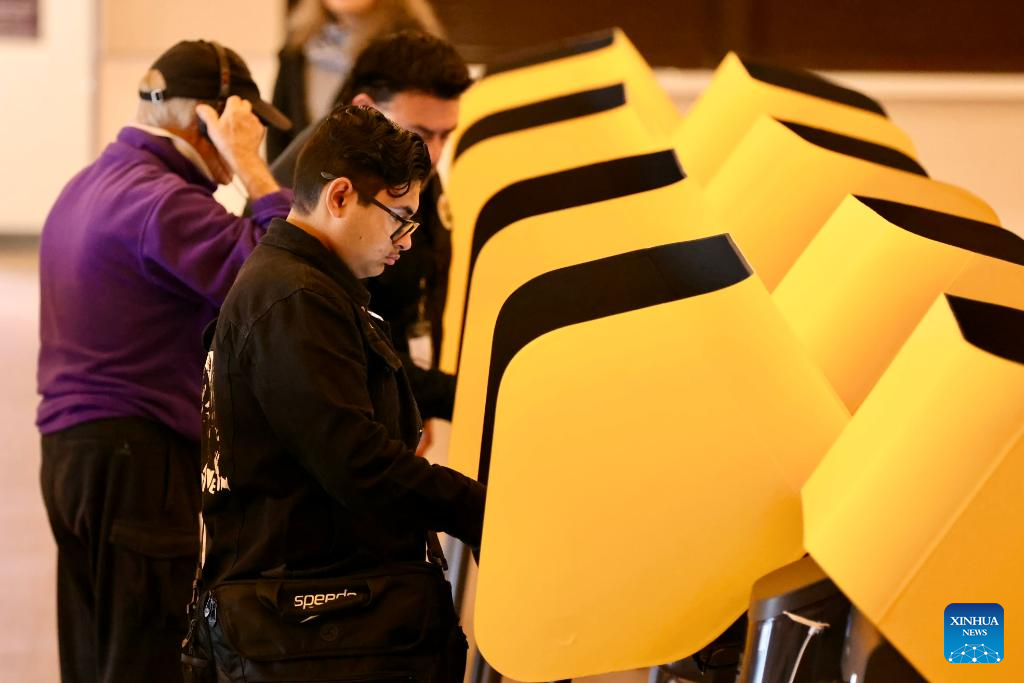 Voters cast ballots at a voting center in Los Angeles County, California, the United States, on March 5, 2024. Polls begin to open in more than a dozen U.S. states on the so-called "Super Tuesday" as part of the 2024 presidential primaries, with voters concerned about the leading candidates of both parties. (Xinhua)