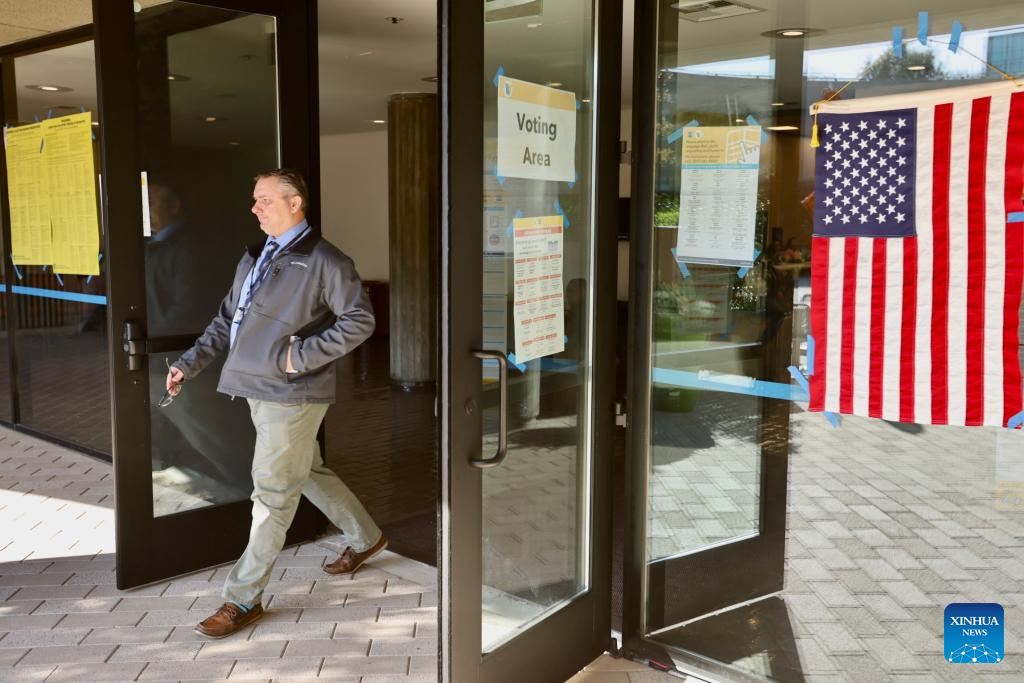 A man leaves a voting center in Los Angeles County, California, the United States, on March 5, 2024. Polls begin to open in more than a dozen U.S. states on the so-called "Super Tuesday" as part of the 2024 presidential primaries, with voters concerned about the leading candidates of both parties. (Xinhua)
