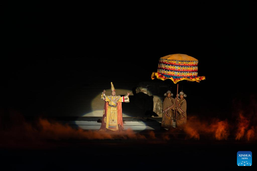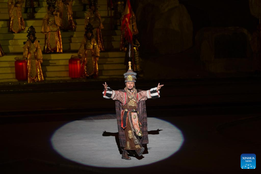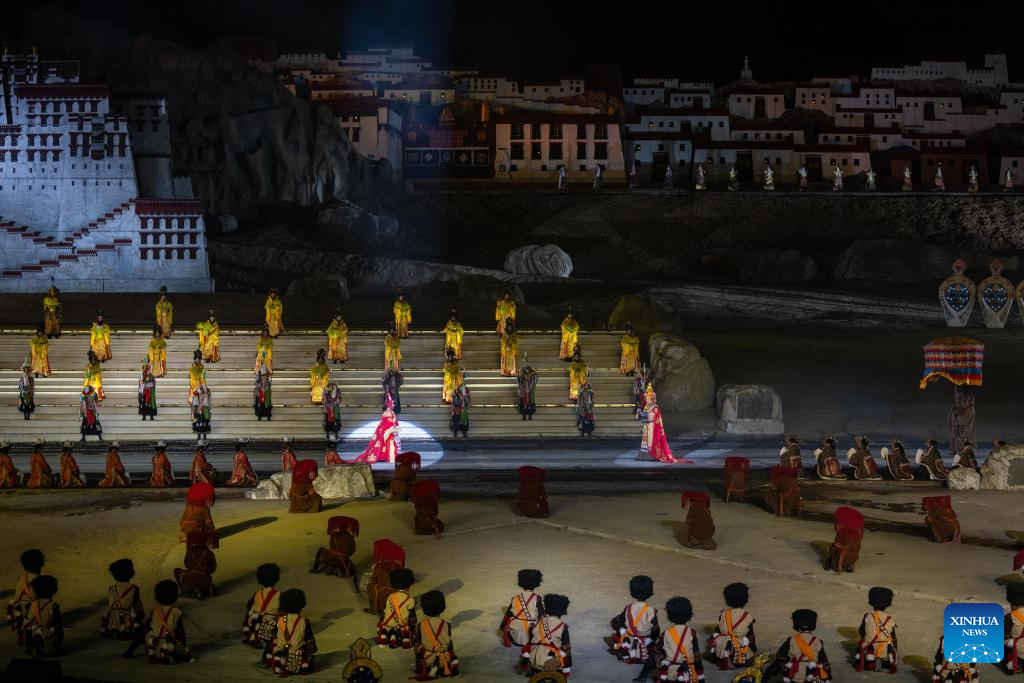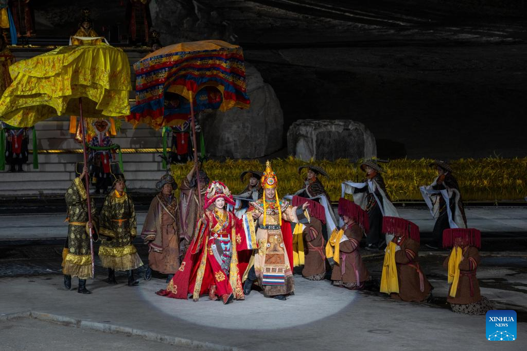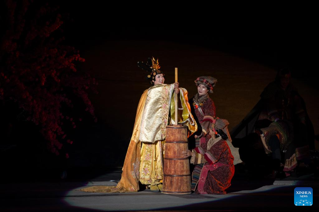 Artists perform in a new season of the historical opera "Princess Wencheng" in Lhasa, capital of southwest China's Xizang Autonomous Region, March 12, 2024. (Xinhua/Tenzing Nima Qadhup)