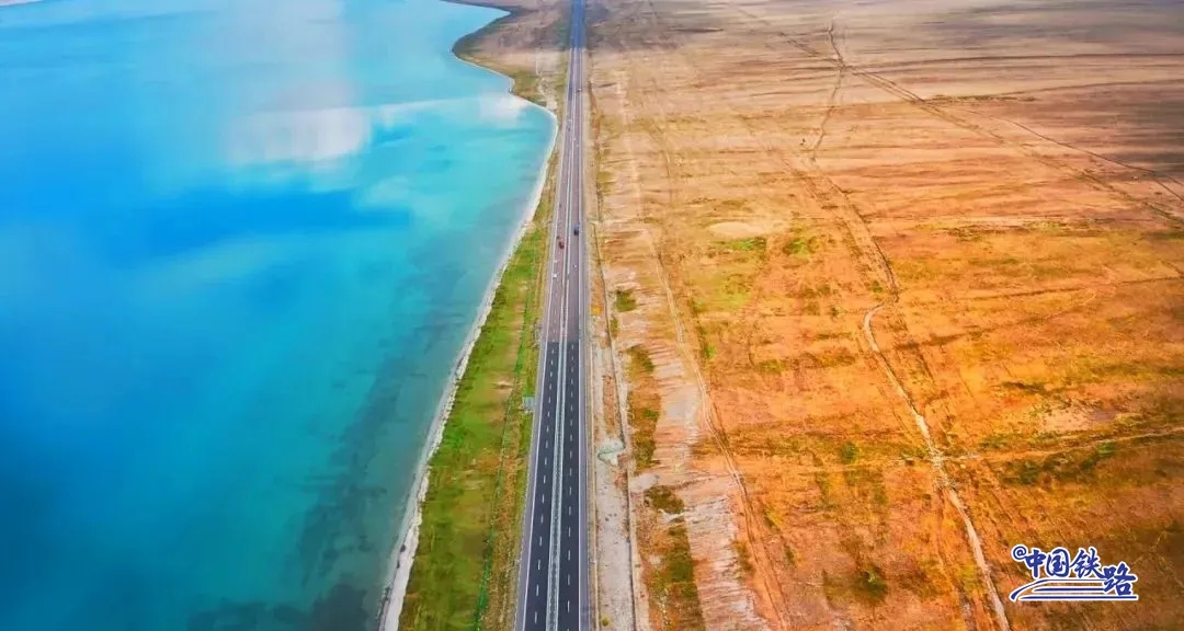 Photo shows the stunning scenery of Sayram Lake in Bortala Mongolian Autonomous Prefecture, northwest China's Xinjiang Uygur Autonomous Region. (Photo/China Railway)