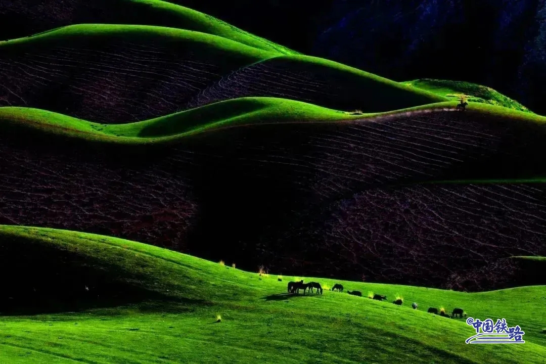 Photo shows the breathtaking scenery of the Kalajun grassland in Tekes county, northwest China's Xinjiang Uygur Autonomous Region. (Photo/China Railway)