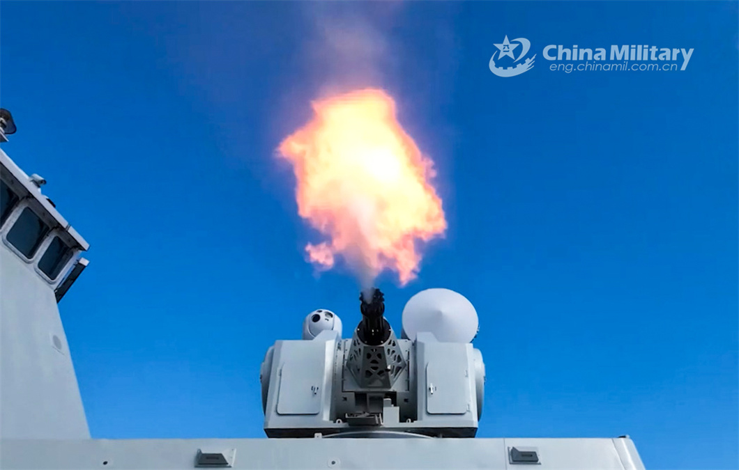 A warship attached to a destroyer flotilla with the navy under the PLA Southern Theater Command fires its close-in weapon system against aerial target s during a comprehensive training exercise in late March, 2024. (eng.chinamil.com.cn/Photo by Huang Jiacheng)