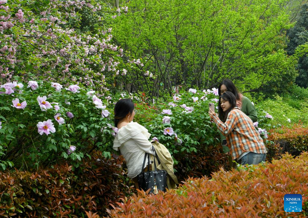 Tourists view peonies at a park in Luoyang, central China's Henan Province, April 1, 2024. (Xinhua/Hao Yuan)