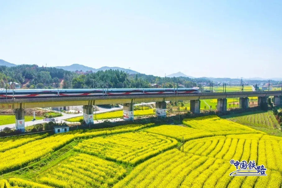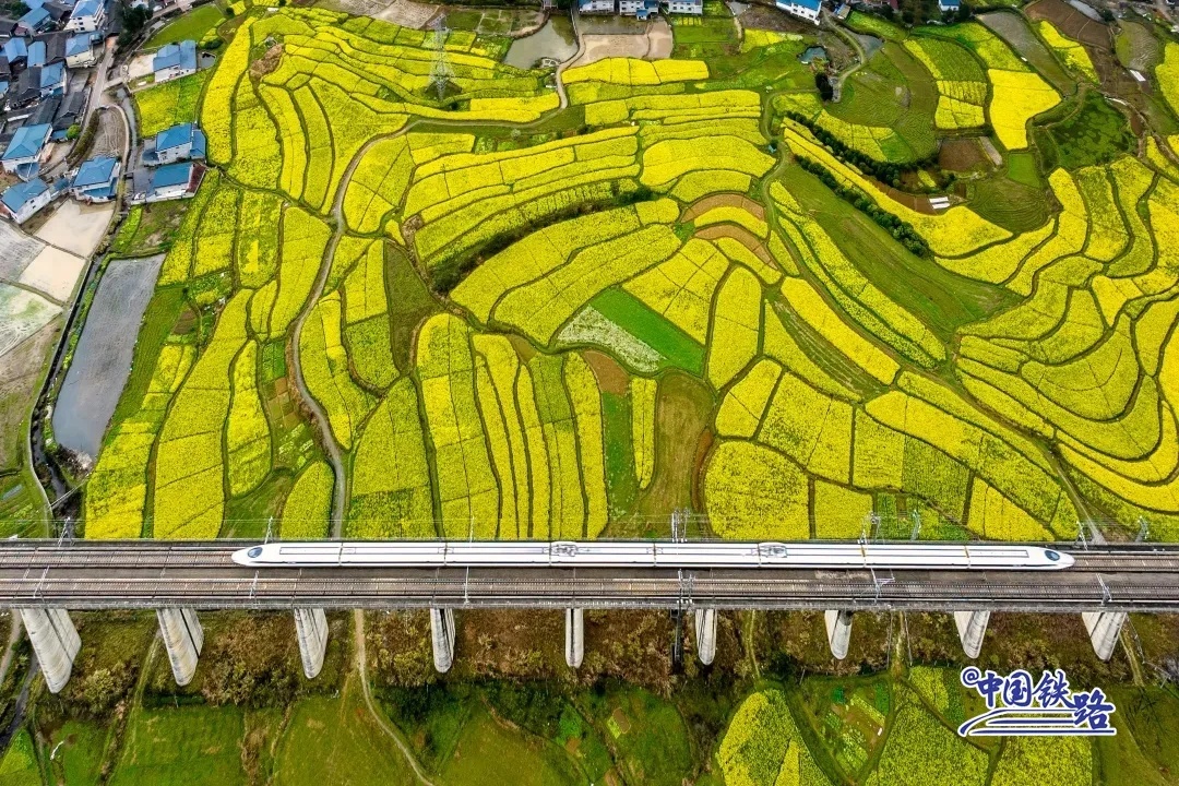 Vast expanses of rapeseed fields have turned into enchanting seas of gold in many regions across China, especially central China's Hunan Province and south China's Guangdong Province, creating breathtaking scenes that bring immense pleasure to passengers traveling by train.