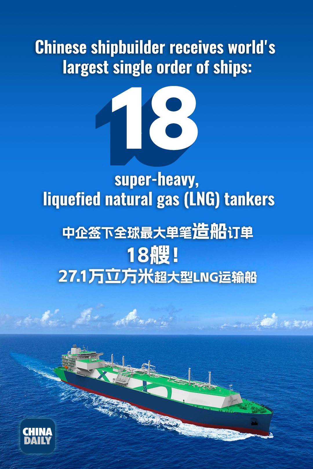 On Monday, China State Shipbuilding Corp, the world's largest shipbuilder, received what it calls the world's largest single order of ships from energy industry giant QatarEnergy.