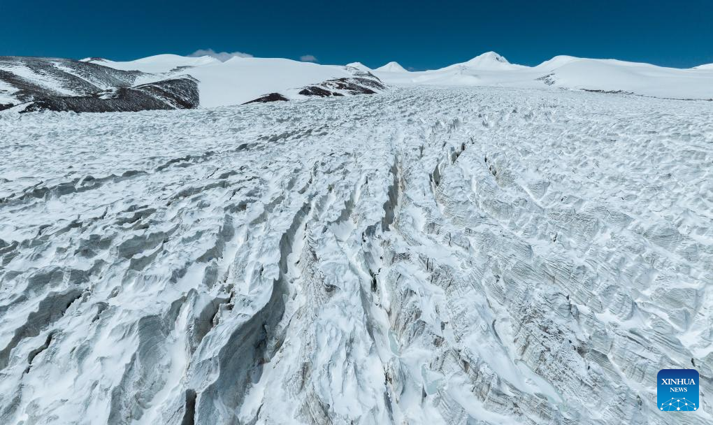 An aerial drone photo taken on May 11, 2024 shows a view of the Zangser Kangri Glacier at the Changtang National Nature Reserve, southwest China's Xizang Autonomous Region. (Xinhua/Tenzin Nyida)