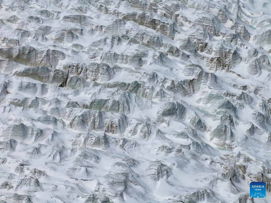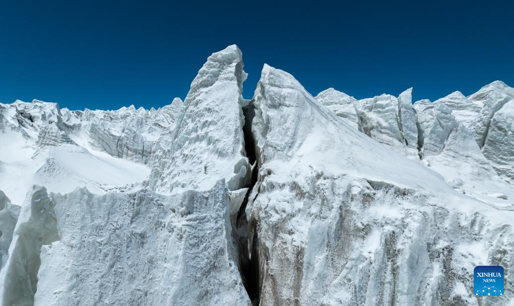 An aerial drone photo taken on May 11, 2024 shows a view of the Zangser Kangri Glacier at the Changtang National Nature Reserve, southwest China's Xizang Autonomous Region. (Xinhua/Jiang Fan)