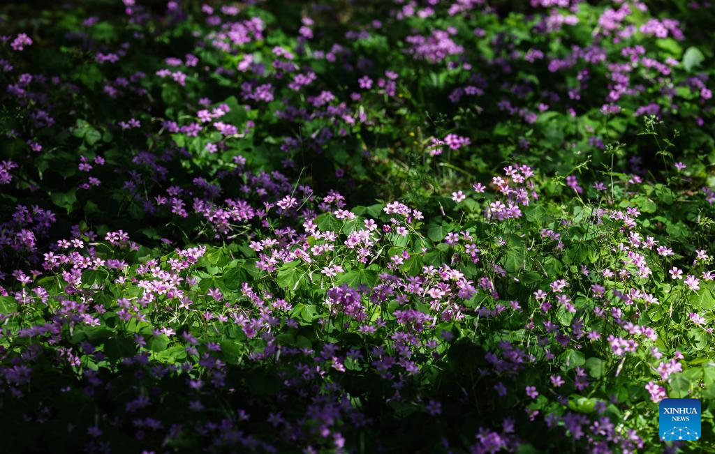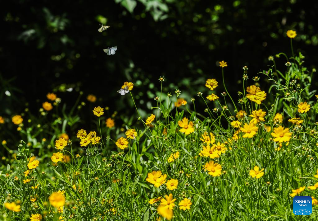This photo taken on May 16, 2024 shows blooming flowers at the Baita Lake national wetland park in Zhuji City, east China's Zhejiang Province. In recent years, Baita Lake national wetland park has implemented ecological restoration projects to improve the wetland ecological environment and promote the harmonious co-existence between man and nature. (Xinhua/Xu Yu)