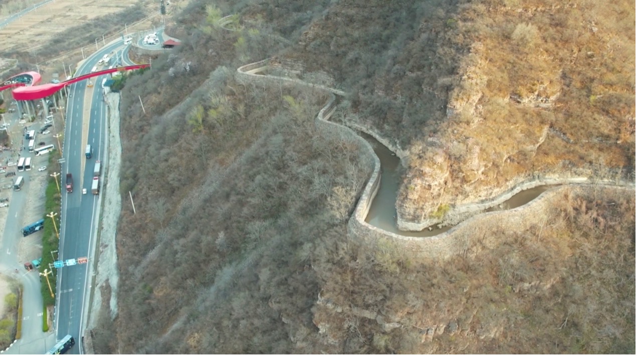 Drone photo taken on March 28, 2024 shows the Red Flag Canal in Linzhou, Anyang, central China's Henan Province. (People's Daily Online/Liu Ning)