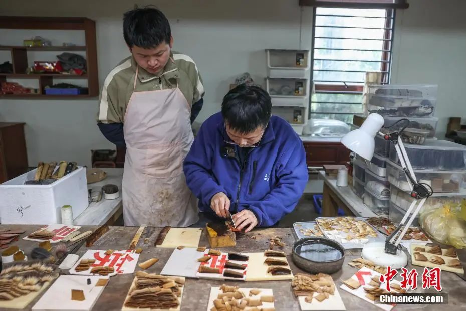 Li Xiaoping, a representative inheritor of the intangible cultural heritage of Wengang calligraphy brush making, has dedicated himself to researching and preserving ancient brush making techniques.