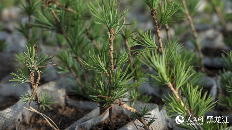 Photo shows thriving pine seedlings at a pine seedling nursery base administered by Mohe Forestry Bureau, northeast China's Heilongjiang Province. (People's Daily Online/Zhang Zhexin)