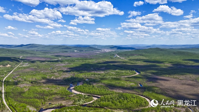 From a bird's-eye view, the forests in the Great Khingan Mountains are like a vast green canvas, gracefully unfurling across the expansive land in northeast China's Heilongjiang Province.
