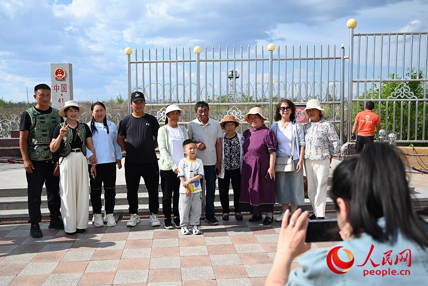 Tourists take photos in front of the No. 41 boundary monument in the national gate scenic spot in the China-Russia Border Tourist Area in Manzhouli city, north China’s Inner Mongolia Autonomous Region. (People’s Daily Online/Liu Yilin)