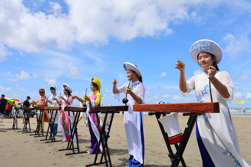 The Jing people played duxianqin, a Chinese plucked string instrument with only one string, and demonstrated their traditional fishing activities to tourists, enabling them to discover the charm of the Jing people’s intangible cultural heritage.