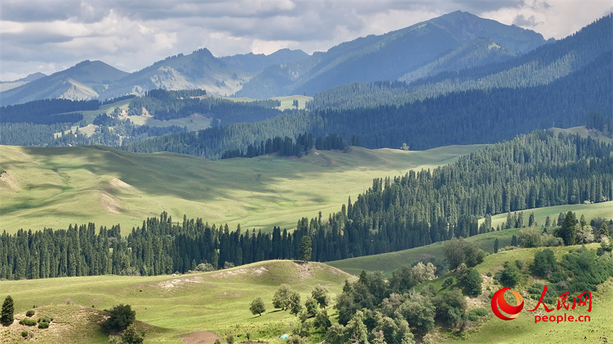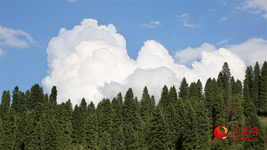 In the summertime, Kuerdening scenic area in Gongliu county, Ili Kazakh Autonomous Prefecture, northwest China's Xinjiang Uygur Autonomous Region, displays captivating scenery. Over the years, the scenic area has witnessed a gradual increase in the number of tourists, thanks to the continuous improvement of tourism infrastructure and service quality.