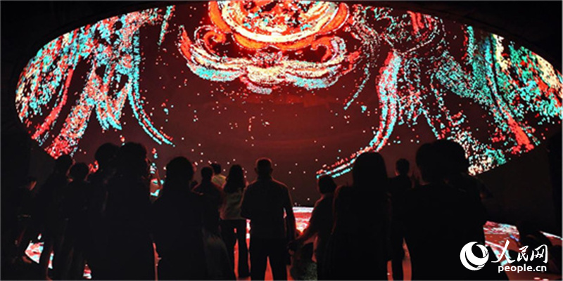Visitors stand under a giant LED dome at Hunan Museum in Changsha, central China’s Hunan Province. (People’s Daily Online/Liu Wei)