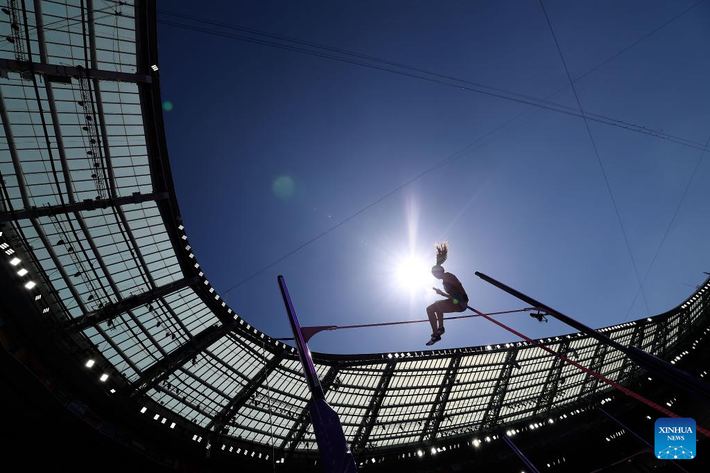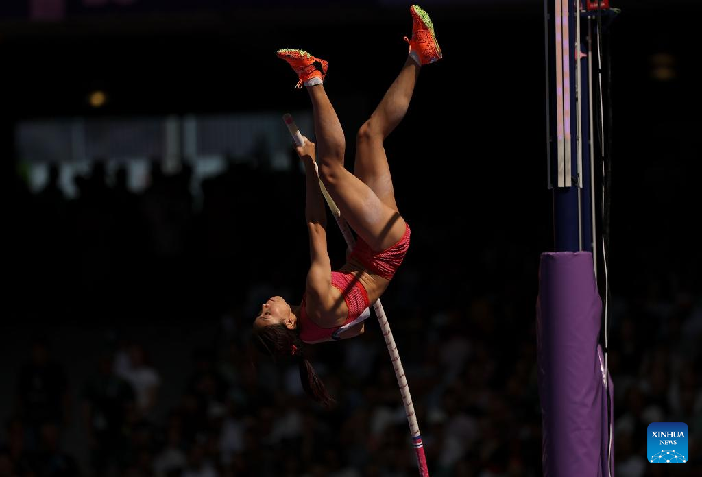Niu Chunge of China competes during the women's pole vault qualification at the Paris 2024 Olympic Games in Paris, France, Aug. 5, 2024. (Xinhua/Li Ming)
